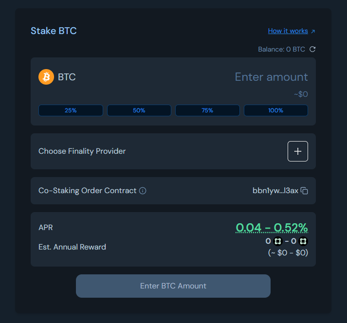 ### **Enter BTC amount & choose Finality Provider**